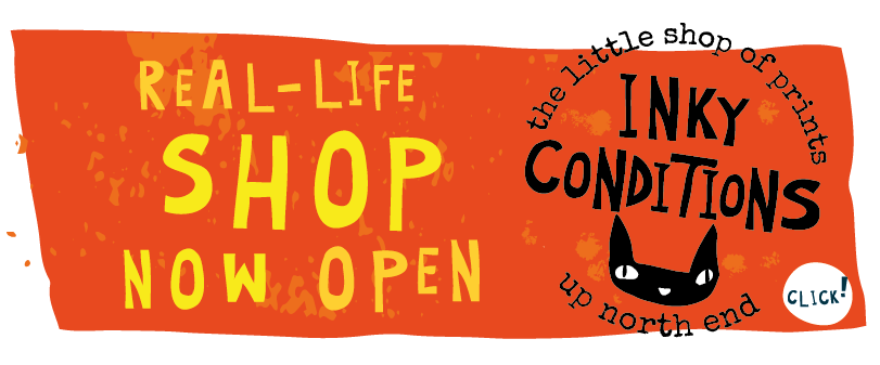 To get in touch, please just kindly send us an email via the link at the bottom of the page. Sorry, no commissions are available with Inky Conditions, but for illustration and design branding projects interested clients may wish to contact me at steve@picturewindow.co.uk